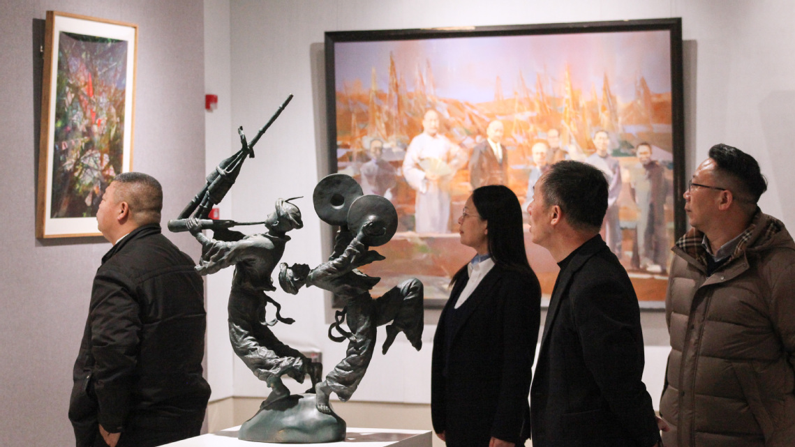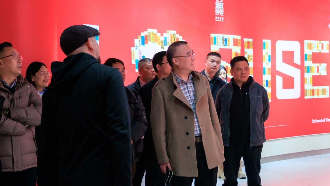 调研组在我校党委副书记陈一君,党委常委、宣传部部长万燚等相关部门负责人的陪同下,参观了我校美术馆正在举办的红色美育画展——“一方布映出中国红•一盏灯点亮全世界”专题展览。该展览运用独特的艺术视角和多样的表现手法,将中国共产党领导下的革命、建设和改革历程,以及新时代中国特色社会主义的伟大成就,生动展现在观众面前。调研组对展览作品给予了高度评价,认为这些作品不仅艺术水准高,而且教育意义深远,对于传承红色基因、弘扬革命精神具有重要意义。
