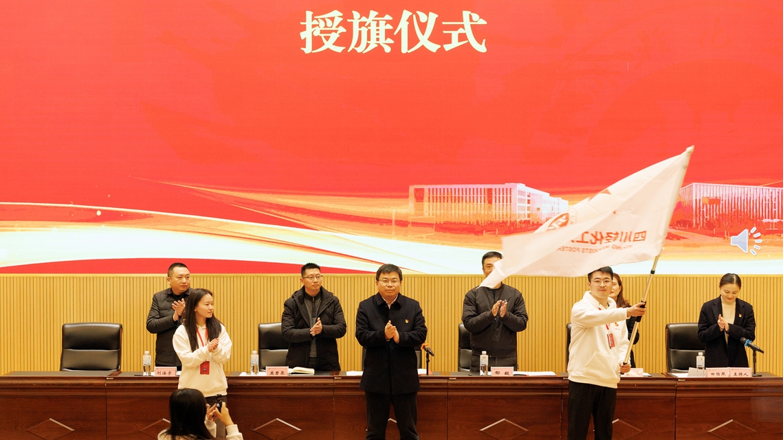 参会领导为第三期“青马工程”学员代表颁发结业证书,并为优秀学员代表颁发了荣誉证书。吴亚东为第四期“青马工程”授班旗。