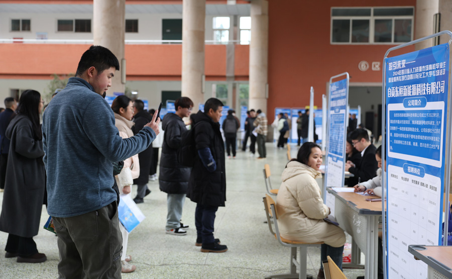 招聘现场,50家企业搭展台、亮需求,提供涵盖机械制造、能源化工、AI数据标注、艺术设计等903个岗位,吸引了众多毕业生参与。
