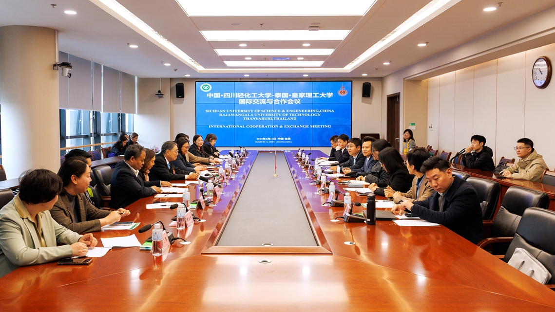 3月11日,泰国皇家理工大学(RMUTT)董事长通柴・塔维差查特教授携夫人图克特温・塔维差查特女士及副校长苏蒙曼・尼亚姆教授等学校行政团队到访我校李白河校区,校长庹先国于办公中心9-1会议室热情接待。