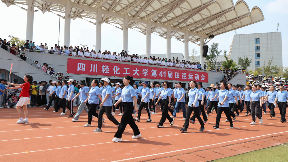 随后,教职工方队踏着《运动员进行曲》的铿锵节奏步入会场,看台上瞬间响起热烈的掌声。这群平日里在三尺讲台授业解惑的教育工作者,此刻换上运动装束,以别样姿态演绎体育精神。他们既展现出川轻化人昂扬向上的精神风貌,更昭示着体育强国建设正在校园沃土上生根发芽。