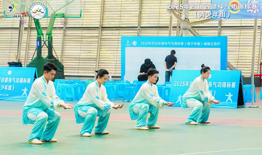 2025年四川省健身气功锦标赛,于5月18日在成都医学院落下帷幕。本次比赛共吸引了来自全省45所学校的80支代表队、306名青少年运动员参赛。由我校体育学院4名学生组成的学生健身气功代表队经过激烈的角逐,最终在集体项目中获得六字诀竞赛功法一等奖、大舞二等奖。在个人项目中,曾朝发获得易筋经竞赛功法第一名、丁杰获得六字诀竞赛功法第二名、周子扬获得大舞第二名、何云霆获得太极养生杖第四名。
