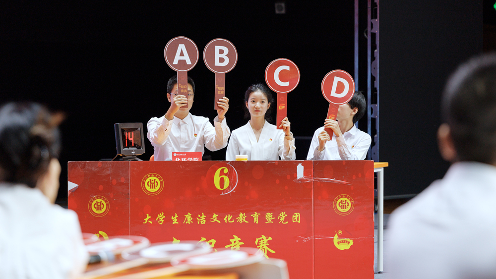 竞赛初赛采用线上答题,现场复赛与决赛包含必答、抢答环节。八支学院队伍晋级决赛,经团队抢答、风险题及附加赛角逐,马克思主义学院和数统学院获一等奖,自信学院、化工学院和食品学院获二等奖,材料学院、美术学院和法学院获三等奖。其中,马克思主义学院与法学院获最佳组织奖。