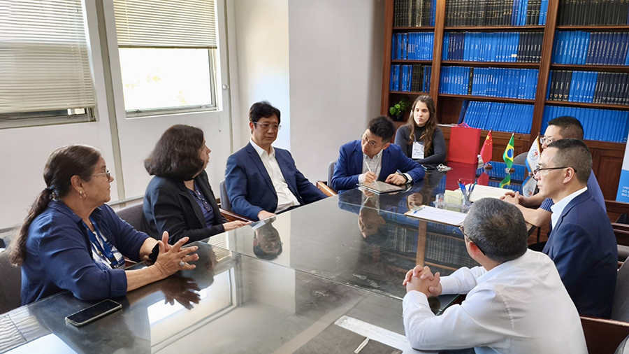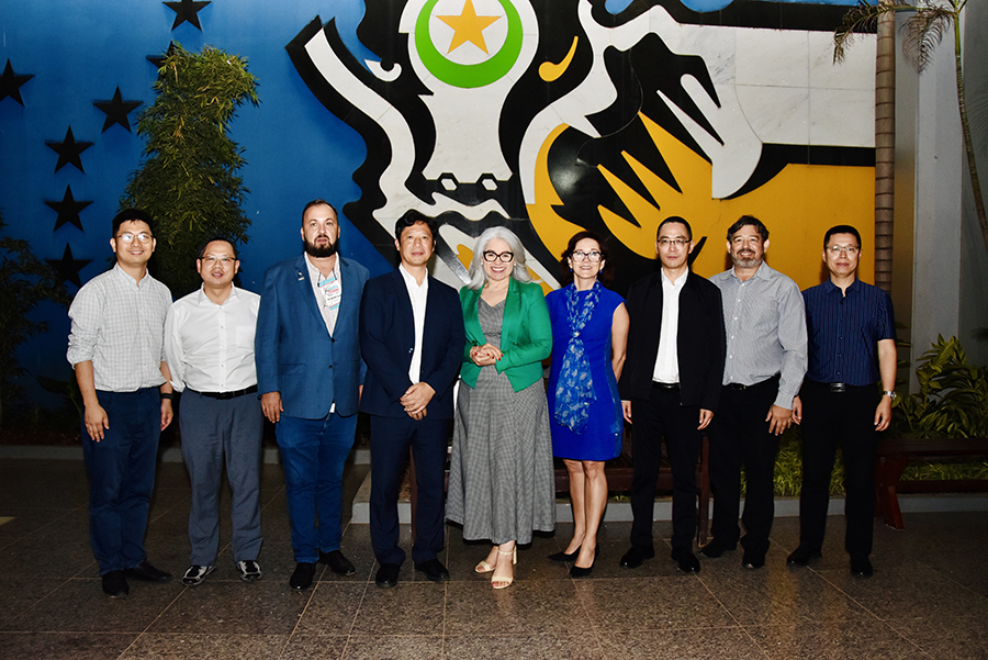 结识新朋友,不忘老朋友。巴西是我校在南美地区合作最为紧密的国家。此行我校继续深化与马托格罗索州合作关系。罗惠波一行在州国际事务办主任丽塔·希利托的陪同下,与州立大学校长维拉·马凯亚及全体校领导会面,并实地考察本部校区,双方就共建孔院、线上课程以及联合科研等再次交换意见、调整合作细节,还专门看望了我校在州立大学深造的毕业生。