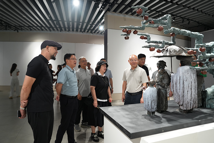 牟文虎在致辞中强调,本次展览是高校、行业协会、企业联动的重要实践,作品紧扣时代脉搏,积极响应习近平总书记“扎根人民、深入生活”的创作号召。他提出,在人工智能时代,雕塑学科如何赋能产业、服务新质生产力是时代新命题。我校美术学院院长黄磊回顾了学院十年的学科建设和研究生培养历程,并指出参展作品贴近社会与现实,展现了师生深厚的专业素养。