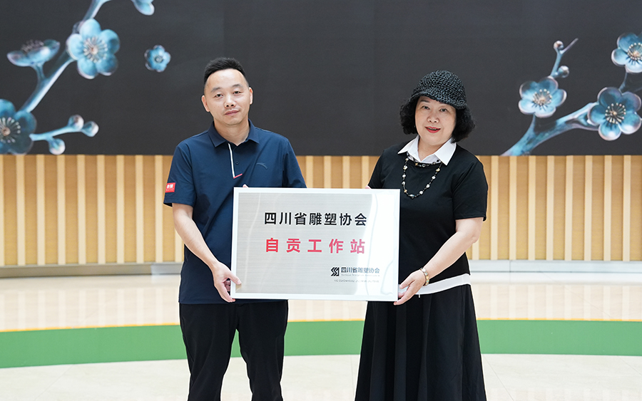 开幕式上,四川省雕塑协会秘书长沈允庆为四川省雕塑协会自贡工作站授牌。