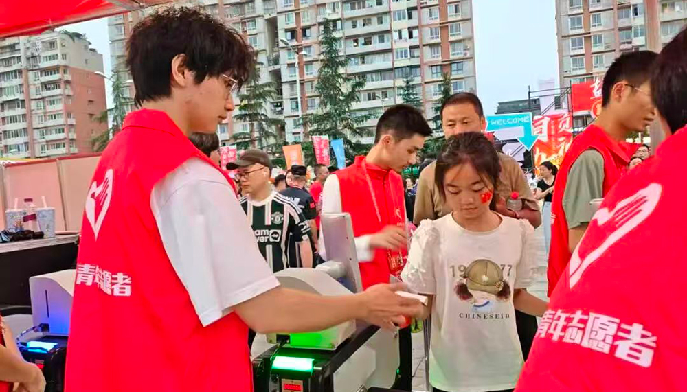 在体育场的各个检票口,志愿者们用微笑和耐心构筑起赛事的第一道风景线。来自消防与安全工程学院的赵志祥同学对此深有体会:“最大的挑战是应对入场高峰期的大客流。观众们都怀着高涨的热情前来,等待时间过长容易引发急躁情绪。”面对这一挑战,他和同伴们探索出了一套行之有效的工作方法——个人始终保持耐心和微笑,用积极情绪感染观众;团队层面则灵活调配人手,在高峰时段加强引导,确保人流快速有序疏散。