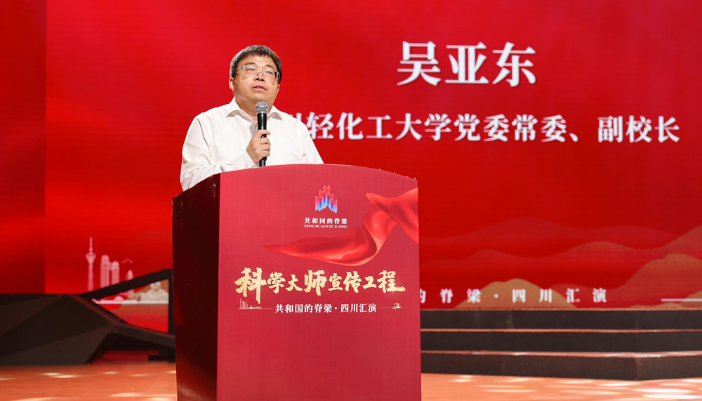 10月11日晚,我校宜宾校区科学会堂内座无虚席、掌声如潮。由中国科协、教育部等多部委联合主办的“共和国的脊梁——科学大师宣传工程”四川汇演剧目《嘉木留芳》演出圆满成功。福州大学党委副书记王向阳,四川省科协二级巡视员、组织人事部部长刘先让,四川轻化工大学党委常委、副校长吴亚东,福州大学人文社会科学学院相关领导,宜宾市相关部门负责人,宜宾市优秀科技工作者代表以及我校师生代表共800余人观看演出。