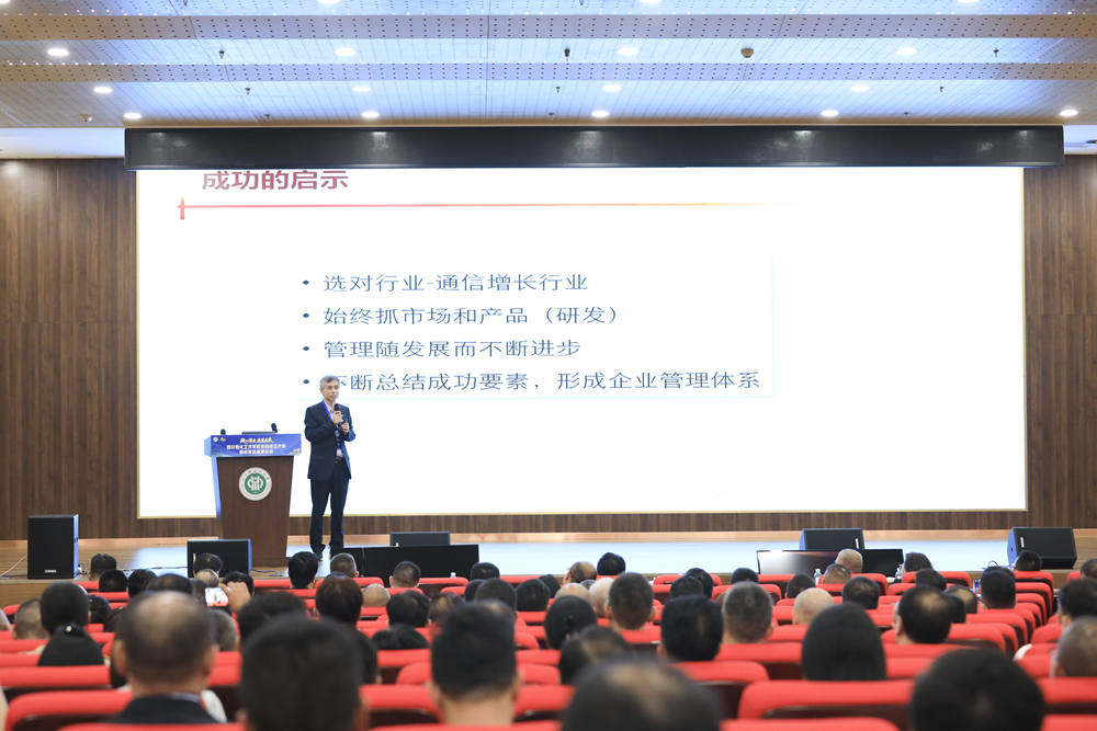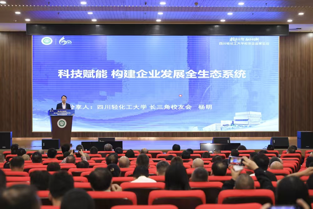 校友会成立大会结束后,召开了“校企汇智·融合创新”校友企业家论坛。八位来自不同行业的杰出校友代表分别围绕企业管理、科技创新、产业升级、人才培养等主题分享。原电子系教师夏忠毅以《华为成功没有秘密》为题,结合自身25年来在华为管理的经历,深入剖析了华为持续成功的内在逻辑;发酵工程专业1984级校友张良以《人才是资本,有为必有位》为题,结合在泸州老窖几十年来的管理经验,强调了人才在企业发展中的核心地位;化工设备与机械专业1990级校友王佳才围绕《校企合作赋能化工产业高质发展》,分享了贵州川恒化工在磷化工领域的技术突破与产业实践;政史教育专业1990级校友邓飞舟以《AI时代的中国智造》为题,讲述了她从一名教师到从事外贸再到科技创业的跨界经历;政史教育专业1993级校友杨明以《科技赋能 构建企业发展全生态系统》为题,介绍了他在柔性电子、智能电力等领域的科研成果与产业化实践;腐蚀与防护专业1994级校友敬开鑫以《行业内卷驱动转型》为题,分析了当前行业竞争格局下企业如何实现转型升级;生物工程专业2000级校友何凡围绕《聚焦本行,拒绝浮躁——工业4.0下的个人奋斗》,分享了他在智能制造领域的实践与思考;机械设计及自动化专业2001级校友蒋安松以《0到100亿,中国材料企业的成长之路》为题,讲述了其带领企业从初创到百亿规模的发展历程与经验总结。