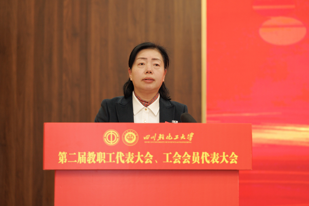 党委副书记、工会主席陈范华作题为《砥砺深耕结硕果 奋楫笃行谱新篇》的工会工作报告,财务处处长毛国育作《四川轻化工大学2020-2024年财务工作报告》。会议还书面审议了《四川轻化工大学2020-2024年法治工作报告》《四川轻化工大学工会经费审查报告》《四川轻化工大学2020-2024年提案工作报告》等。